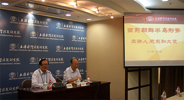 6月9日下午,中国前驻朝鲜大使、中国朝鲜友好协会会长武东和大使来院作“当前朝鲜半岛形势”的报告。杨洁勉院长主持报告会。上海国际战略问题研究会、上海市国际关系学会会员和我院研究人员聆听了大使的报告。报告会前,杨洁勉院长会见武东和大使。