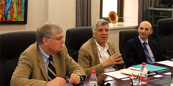 7月25日上午,欧盟安全问题研究所(European Union Institute for Security Studies, EUISS)代表团在所长阿尔瓦罗·德·瓦斯冈萨雷斯(Alvaro de Vasconcelos)的带领下来访我院。陈东晓副院长会见代表团一行。我院欧洲研究中心主任叶江、国际战略研究所执行所长赵干城、亚太研究中心主任马孆和全球治理研究所副所长叶青等参加座谈。宾主双方就中欧关系、中国外交政策、全球治理和印度、阿富汗问题等问题交换意见。