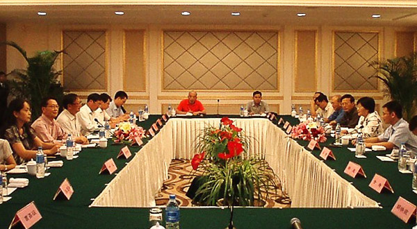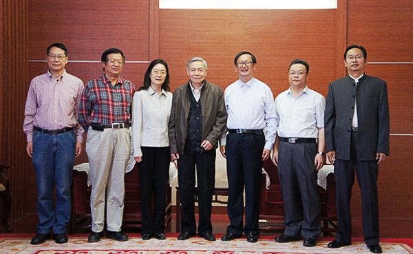 杨洁勉院长、杨剑副院长与云南省社会科学院院长任佳(左三)副院长杨福泉(左二)、王文成(右二)、