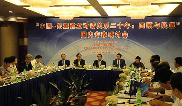 2011年9月2日,我院与中联部当代世界研究中心及暨南大学国际关系学院在广州联合主办“中国-东盟建立对话关系二十年:回顾与展望”国内研讨会。与会的国内专家学者就中国与东盟在政治、经济、安全、文化等方面的交往进行讨论。