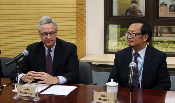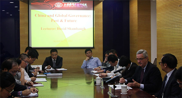 9月19日和20日,乔治·华盛顿大学埃略特国际事务学院(Elliott School of International Affairs, George Washington University)教授、中国政策研究项目主任、布鲁金斯学会中国研究中心高级研究员沈大伟(David Shambaugh)来访我院,分别就“中美关系:脆弱的稳定” (US-China Relations: Fragile Stability)和“中国与全球治理:过往与前景”(China and Global Governance: Past & Future)作主题演讲。报告会分别由杨洁勉院长和我院美洲研究中心主任吴莼思主持。会后,沈大伟教授还接受中美交流基金会与我院的专访。