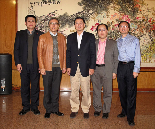 与德州A&M大学老布什学院(George W• Bush School)学者会谈(后排左三:小布什时期白宫办公厅主任卡德)