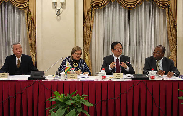 3月15日,由我院及津巴布韦南部非洲研究与文献中心(Southern African Research and Documentation Centre, SARDC)共同举办的“第二届中非中津关系与南部非洲区域合作”国际研讨会于我院召开。杨洁勉院长和津巴布韦非洲大学(African University)资深研究顾问安德森·杉康嘎(Anderson Shankanga)分别为研讨会致开幕辞。中国前驻纳米比亚大使唐振琪莅临会议。来自津巴布韦南部非洲研究与文献中心、察哈尔学会、华东师范大学、达之路国际控股集团和我院等单位的与会代表围绕“中非中津关系”及“对非洲问题与全球问题的视角与建议”等议题进行深入研讨。(人民网对会议亦有报道:http://world.people.com.cn/GB/17400790.html )