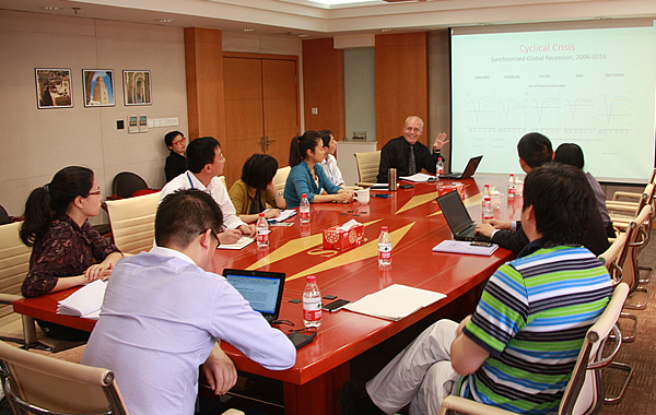 5月28日下午,我院访问学者丹·斯坦巴克(Dan Steinbock)作题为“欧债危机与二十国集团前瞻”的专题讲座。世界经济研究所执行所长张海冰、区域经济室主任叶玉、金融贸易室主任査晓刚以及部分其他青年研究人员出席讲座。