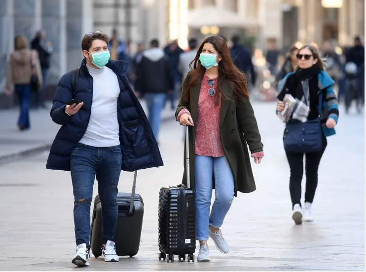 People wear masks as they walk in Milan, Italy, February 24, 2020. /Xinhua
