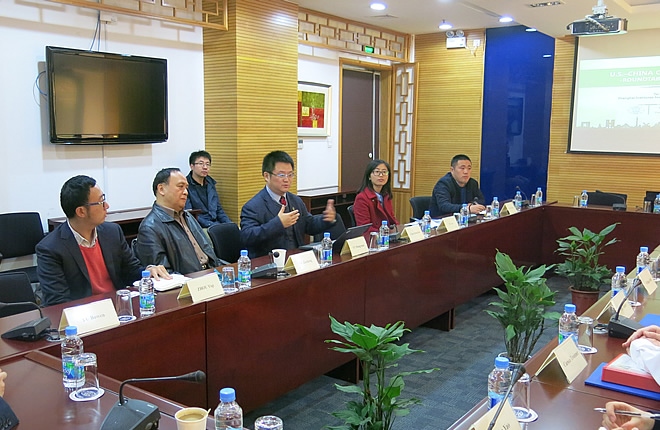 On March 11, 2017, the U.S.-China City Diplomacy roundtable workshop was held in SIIS. Prof. Yu Hongyuan, director of the Institute for Comparative Politics and Public Policy, SIIS chaired the meeting. The U.S. participants included Mr. Carson Tavenner, Executive Director of the Tai Initiative, Mr. William Wild, Mayor of Westland, Mr. Tom Kneeland, Mayor of Gahanna, Mr. Tony Slanec, Principal of OHM Advisors and their colleagues. They had a discussion with Chinese scholars on city diplomacy, infrastructure development, urbanization in China and U.S. etc. Prof. Zheng Hua from Shanghai Jiaotong University, Prof. Xu Zecheng from Fudan University, Dr. Xue Qiyong from Shanghai International Studies University etc. attended the workshop.