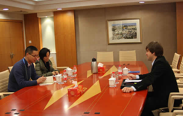 December 17, Mr. Mikko Huotari, PhD. Candidate from Department of International Politics of University of Copenhagen visits SIIS and exchanges views with Dr. Ye Yu, Assistant Director of the Institute for World Economy Studies, Dr. Zha Xiaogang, Director of the Office of Finance and Trade on the internationalization of RMB and other issues.