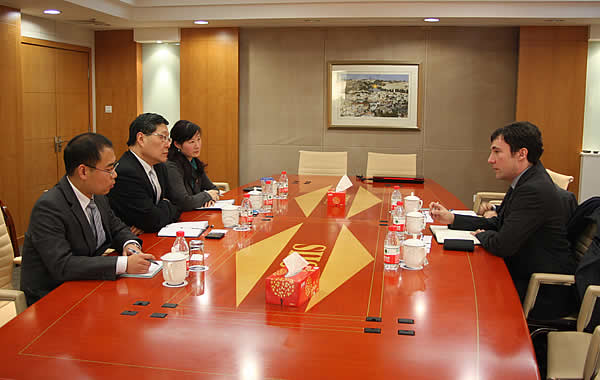 January 28, Dr. Mathieu Duchatel, Senior Researcher and Head of China and International Peace and Security Project at the Stockholm International Peace Research Institute (SIPRI) visits SIIS and discusses with Prof. Zhao Gancheng, Director of the Center for Asian-Pacific Studies, Dr. Qiang Xiaoyun, Deputy Director of the Center for Russian & Middle Asia Studies and Dr. Wang Weihua, Assistant Director of the Institute for Foreign Policy Studies on China’s foreign policy towards the Central Asia, China’s energy strategy and some other issues.