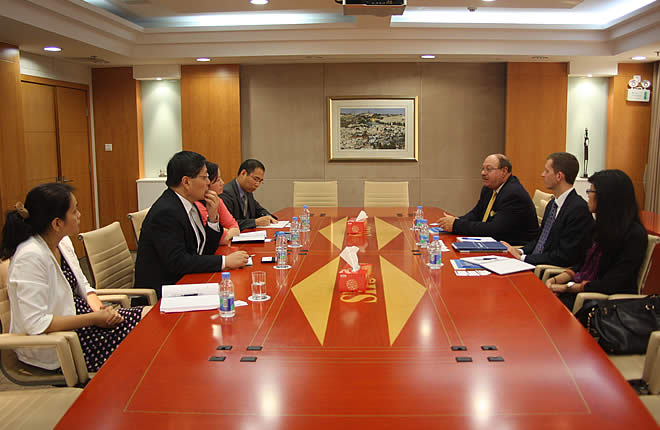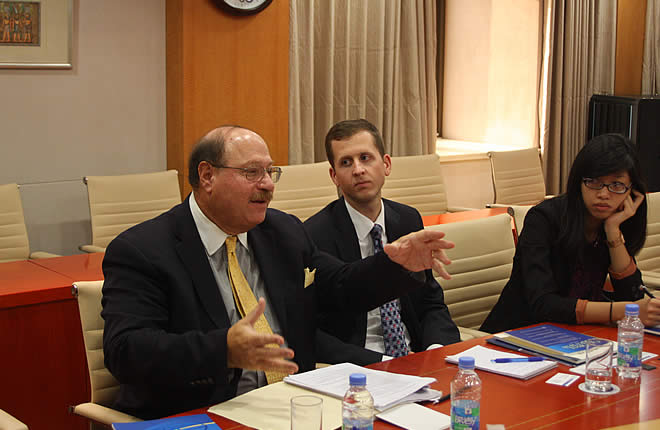 October 11, Prof. Robert Manning, Senior fellow of Atlantic Council, visits SIIS and has discussion with Prof. Zhao Gancheng, Director of the Center for Asian-Pacific Studies, Dr. Wu Chunsi, Executive Director of the Institute for International Strategic Studies, Dr. Shao Yuqun, Executive Director of the Center for American Studies, Dr. Qiang Xiaoyun, Deputy Director of the Center for Russian & Central Asian Studies, Prof. Cai Penghong, Senior fellow of the Institute for Foreign Policy Studies, Dr. Wang Weihua, Assistant Director of the Institute for Foreign Policy Studies, Dr. Xue Chen from the Institute for International Strategic Studies, Mr. Lu Chuanying from the Institute for Data Processing and Studies on new model of major power relations, Sino-U.S. cooperation in Central Asia and Asia-Pacific regions, post 2015 Afghanistan situation and some other issues.