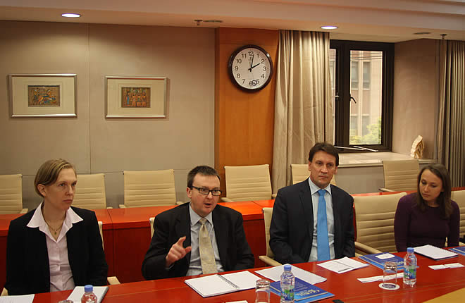 November 13, Mr. Chris Birrer, Assistant Secretary of Department of Defense of Australian Government, visits SIIS and has discussion on Asia-Pacific security, Middle East and South Asia issues with Dr. Ye Qing, Assistant President and Director of the Center for West Asian & African Studies, Prof. Zhao Gancheng, Director of the Center for Asia-Pacific Studies and Dr. Xue Cheng from the Institute for International Strategic Studies.