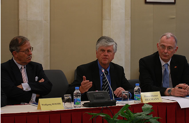 On April 29, President Chen Dongxiao meets with the delegation of Federal Academy of Security Policy and has a discussion on China’s modernization, Shanghai’s opening up and economic development. Dr. Ye Qing, Assistant President and Director of the Center for West Asian and African Studies, Dr. Zhang Yinghong, Director of the Center for European Studies, Dr. Shao Yuqun, Director of the Center for American Studies, Prof. Cai Penghong, senior research fellow of the Institute for Foreign Policy Studies, Dr. Long Jing, Deputy Director of the Center for European Studies, Dr. Jin Liangxiang from the Institute for International Strategic Studies and Dr. Zha Xiaogang, Director of the Office for Finance and Trade of the Institute for World Economy Studies also attends the meeting.