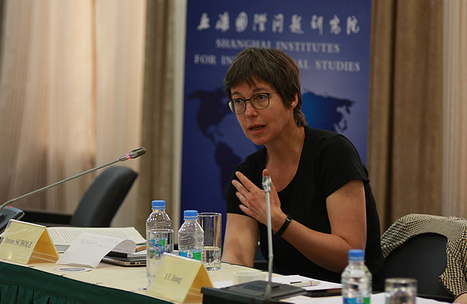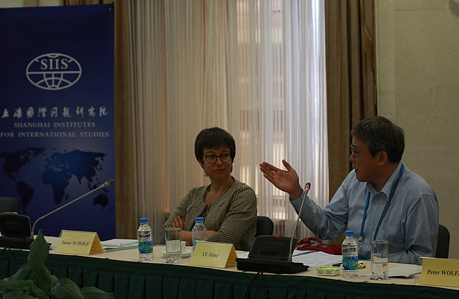 On June 5-6, Shanghai Institutes for International Studies and German Development Institute co-hold the international symposium on “Debate and Cooperation on Post 2015 Agenda between China and Germany/EU”. Both scholars have a warm discussion on Chinese and German/European Discoursed on Post-2015, opportunities and challenges of the Post-2015 Agenda, China’s position on MDGs and Post-2015,German and European’s positions on MDGs and Post-2015,BRICS positions on Post-2015, negotiation dynamics over Post-2015, financing and other means of implementation and Conclusions and way forward with the publication. Prof. Ye Jiang, Executive Director of the Institute for Global Governance Studies, chairs the meeting. Prof. Zhang Haibing, Executive Director of the Institute for World Economy Studies , Dr. Zhang Chun, Deputy Director of the Center for West Asian and African Studies, Dr. Ye Yu, Assistant Director of the Institute for World Economy Studies and other participants from the Institute for Global Governance Studies also attend the meeting.