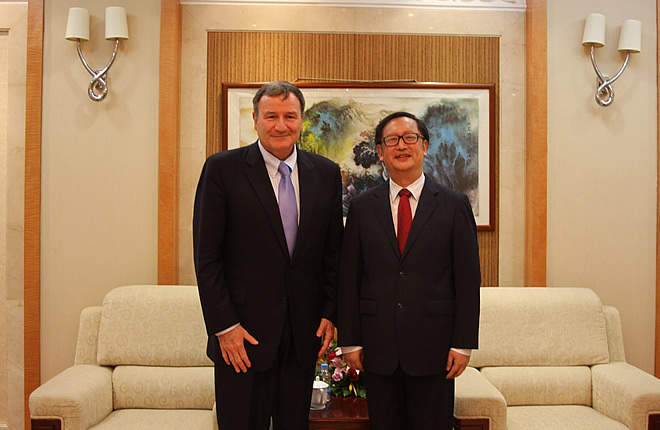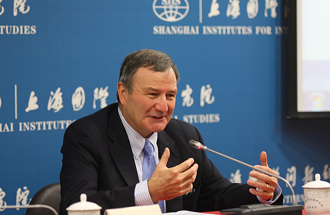 From September 27 to 29, Amb. Karl W. Eikenberry, former U.S Ambassador to Afghanistan visits SIIS as the visiting scholar. Amb. Eikenberry gives a lecture on Afghanistan issues to SIIS researchers. SIIS President Chen Dongxiao chairs the lecture. Amb. Eikenberry also receives video interview of SIIS website. Prof. Yang Jiemian, and research fellows from the Institute for International Strategic Studies, the Center for American Studies, and the Center for Asia-Pacific Studies meet with the ambassador and exchange views on US national security strategy, Sino-US security cooperation, Afghanistan situations, and some other issues.