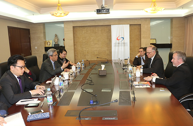 On February 24, 2017, Dr. Andrew Weiss, Vice President of the Carnegie Endowment for International Peace and Dr. Alexander Gabuev, Chair of the Russia in the Asia-Pacific Program at the Carnegie Moscow Center visited SIIS and met with SIIS President Chen Dongxiao, Director Li Xin, Deputy Director Qiang Xiaoyun, Dr. Qian Zongqi and Dr. Zhao Long from the Center for Russian & Central Asian Studies. The two sides exchanged views on China-US-Russian trilateral relations.