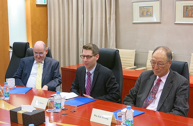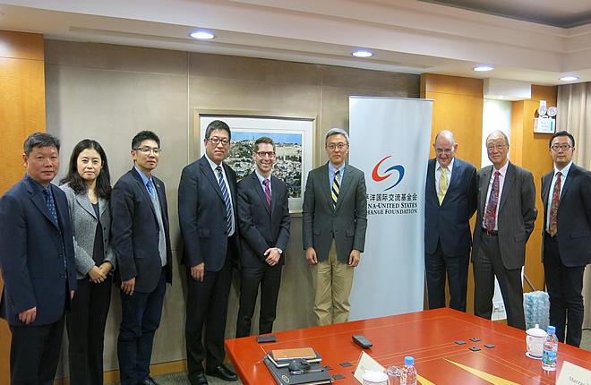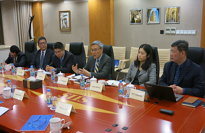 On March 23, 2017, SIIS President Chen Dongxiao met with Mr. Daniel Silver, Assistant Director of the Asia Pacific Institute of the American Jewish Committee (AJC) and his colleagues. The AJC group members had a discussion with SIIS research fellows on current international situation and Trump administration etc. Prof. Ye Qing, SIIS assistant director, Prof. Li Weijian, Prof. Zhang Haibing, Prof. Jin Liangxiang and Mr. Zhou Yiqi also participated in the meeting.
