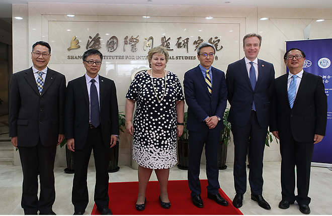 On April 8, 2017, H.E. Erna Solberg, Prime Minister of Norway visited SIIS and participated in the China-Norway Dialogue on the Changing Arctic and International Cooperation co-sponsored by SIIS and Polar Research Institute of China (PRIC).