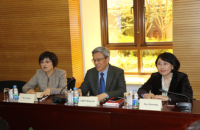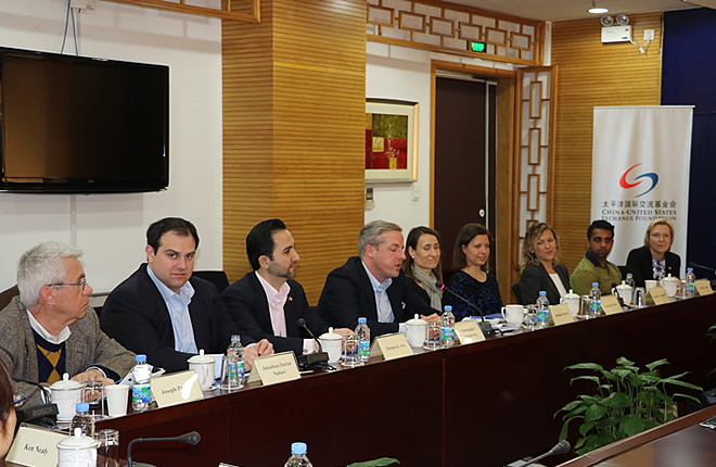 On April 12, 2017, SIIS President Chen Dongxiao met with the 110th US-Asia Institute’s Congressional staff delegation visited SIIS led by Mr. Christopher Armstrong, investigative counsel of the Committee on Finance, U.S Senate. The two sides had a discussion on regional issues. Prof. Wu Chunsi, director of the Institute for International Strategic Studies and Dr. Pan Xiaoming from the Institute for World Economic Studies attended the meeting.