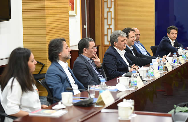 With regards to bilateral relations, H.E. Mr. Gül expressed his admiration of China’s development model with a priority on stability. He also suggested that Turkey emulate from China and play a more constructive role in regional affairs to maintain peace and stability in its neighborhood. Mr. Gül pointed out that Turkey’s Middle Corridor axis, a massive transportation network was almost the same as the Belt and Road Initiative proposed by China, therefore, the two countries shared a lot of common interests. Besides infrastructure, Turkey also expects future cooperation from China in key fields like finance and tourism.