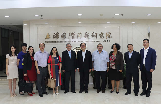 On June 22, 2017, Prof. Yang Jiemian, chairman of SIIS Academic Affairs Council met with Mr. José Ramón Balaguer, head of the International Department of the Communist Party of Cuba and his colleagues. The two sides had a discussion on China-U.S. relations and Cuba-U.S. relations etc. Prof. Niu Haibin, Dr. Lou Xiangfei and Huang Fangfang from the Center for American Studies attended the meeting.