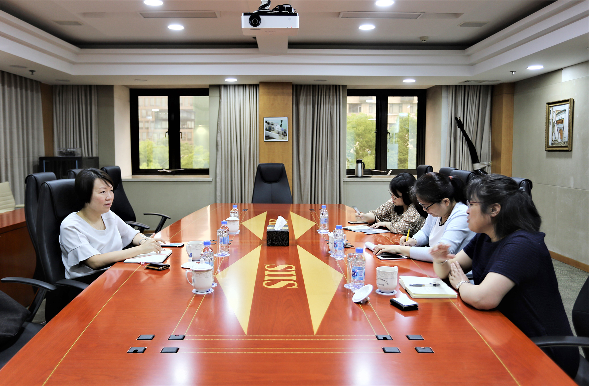 On July 9th, 2019, Ms Liew Li Lin, Deputy Consul-General of Singapore in Shanghai visited SIIS. During the visit, Ms Liew had a discussion on China-US relations and the Taiwan question with Prof. Shao Yuqun, director of the Institute for Taiwan, Hongkong and Macao Studies, Dr. Wu Chunsi, director of the Institute for International Strategic Studies, and Ms. Ji Yixin from the Institute for Taiwan, Hongkong and Macao Studies.