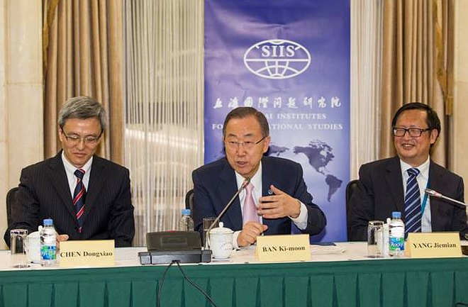 UN Secretary-General Ban Ki-moon visited Shanghai Institutes for International Studies (SIIS) on May 19, 2014. Mr. Ban K