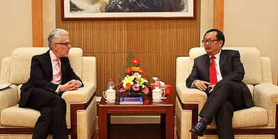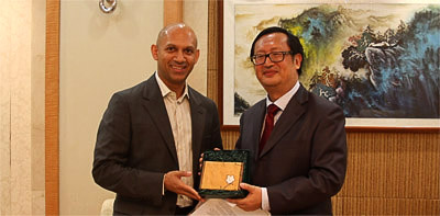 July 8, SIIS President Yang Jiemian meets with Mr. Nadir Patel, Consul General of Canada and Ms. Sumeeta Chandavarkar, C