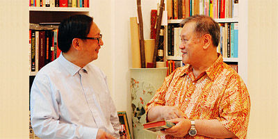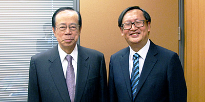 April 23 in Tokyo, SIIS President Yang Jiemian meets with Yasuo Fukuda, former Prime Minister of Japan and member of the
