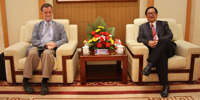 June 14, SIIS President Yang Jiemian meets with Dr. John Fitzgerald, representative of the Ford Foundation"s Office in B