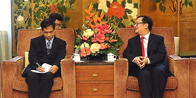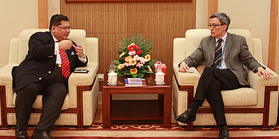 May 26, Yang Jiemian, SIIS President Yang Jiemian meets with Mr. KoKoHlaing, Chief Political Advisor, Dr. Nay ZinLatt, P