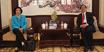 April 17, SIIS President Yang Jiemian and Vice President Yang Jian meet with Ms. Junhui Wu, Senior Policy Advisor of the