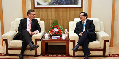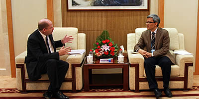 October 24, SIIS Vice President Chen Dongxiao meets with Mr.Tim Johnston, Regional Editor of HSBC and discusses the issu