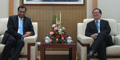 February 25, Sri Lanka Ambassador to China Karunatilaka Amunugama visited SIIS and talked with President Yang Jiemian an