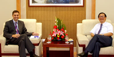 July 18, Dan Chugg, Chief Counsellor of the British Embassy to China, visited SIIS and talked with President Yang Jiemia