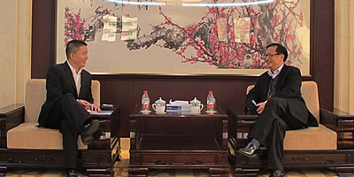 November 11, SIIS President Yang Jiemian met with Ding Jianyong, Chairman of Shanghai Dongchang Group.