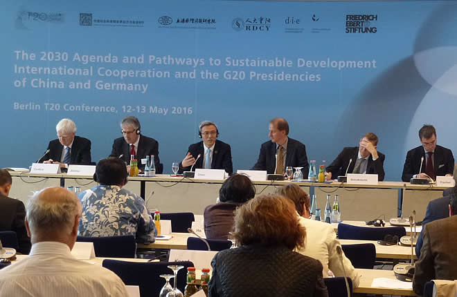On May 12 and 13, Berlin T20 Conference, co-hosted by German Development Institute (DIE), the Friedrich Ebert Foundation (FES), Shanghai Institute for International Studies (SIIS), Institute of World Economics and Politics - Chinese Academy of Social Sciences (IWEP-CASS), and Chongyang Institute for Financial Studies (RDCY), was held at FES headquarter. About 150 renowned think tank scholars, policymakers, representatives from international organizations and civil groups, as well as representatives from C20, W20, B20 and L20 had a heated and fruitful discussion on the theme of “the 2030 Agenda and Pathways to Sustainable Development, International Cooperation and the G20 Presidencies of China and Germany”. The meeting yielded many policy recommendations, and Berlin T20 Conference Communique was issued at the conclusion of the meeting.