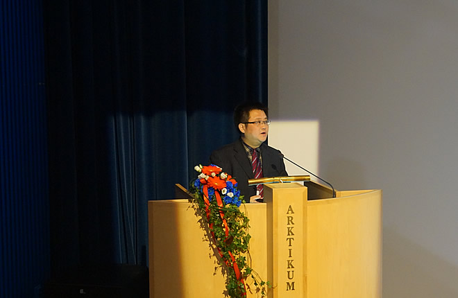 VP Yang Jian delivering a speech at Tallinn University with attendance of Mr. Qu Zhe, Chinese Ambassador to Estonia