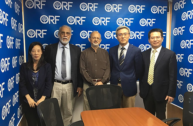 From March 31 to April 6, 2017, invited by Mr. K. V. Kamath, president of the New Development Bank (NDB) and Ambassador Jayant Prasad, president of the Institute for Defense Studies and Analyses (IDSA), SIIS president Chen Dongxiao led a delegation to India to attend the second annual meeting of the NDB and held a dialogue with IDSA. The delegation also met with Ambassador Luo Zhao Hui and Minister Liu Jinsong from Chinese Embassy in India, and visited Indian think tanks including the Vivekananda International Foundation (VIF), Indian Foundation (IF), Observer Research Foundation (ORF) and Institute of Chinese Studies (ICS) etc. The two sides had a discussion on the impact of the changing world order and the Trump administration on India, the opportunities and challenges of China-India relations etc.
