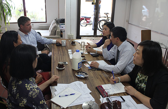 与亚洲基金会老挝办公室工作午餐(右二为老挝办公室主任 Nancy)