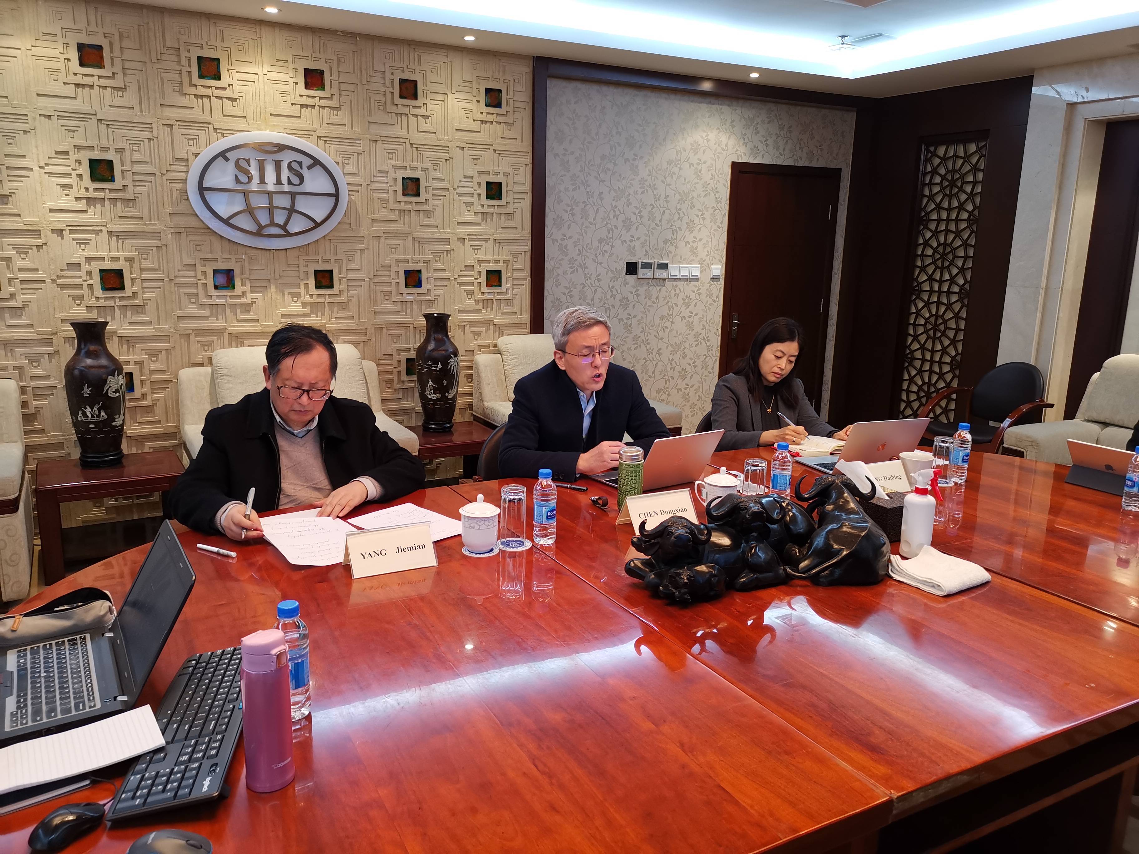 2020年4月21日,上海国际问题研究院学术委员会主任杨洁勉主持召开“加强国际抗疫合作和维护中美关系(五)”的视频研讨会。中方与会者有:院长陈东晓、全球治理所所长张海冰。美方与会者有:密执安大学教授、原美国总统特别助理和国家安全委员会亚太事务高级主任李侃如(Kenneth Lieberthal);布鲁金斯学会中国中心高级研究员、原美国财政部在美国驻华使馆的代表David Dollar。双方与会者就当前和今后的国际形势、世界经济和中美关系进行了坦诚和深入的讨论,双方认为中美两个全球大国要有历史担当,坚决排除一切干扰,维护中美关系和推进国际合作抗疫。
