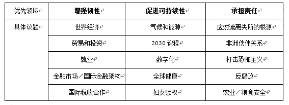 2017年G20汉堡峰会的优先领域