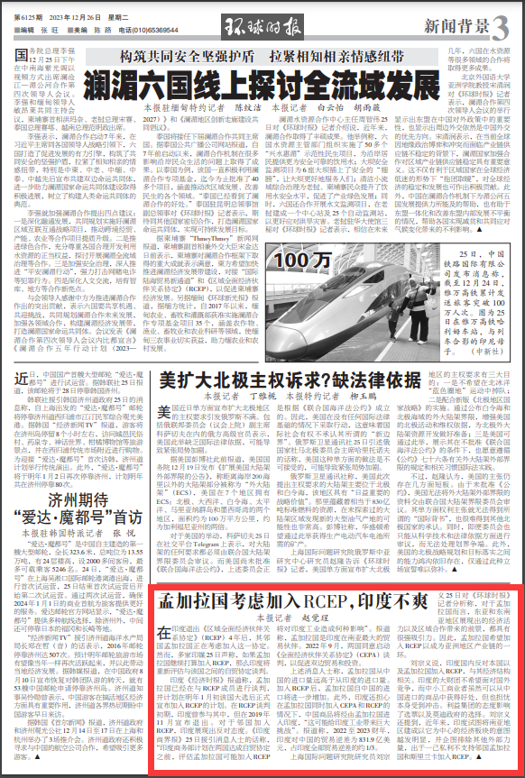 刘宗义接受环球时报采访,谈印度反对孟加拉国加入RCEP