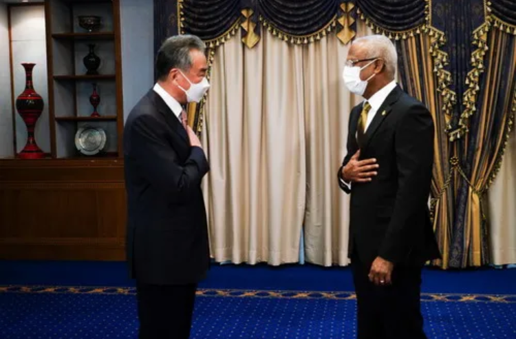 当地时间2022年1月8日,马尔代夫总统萨利赫在马累会见应邀访马的国务委员兼外长王毅。图源:中国外交部网站